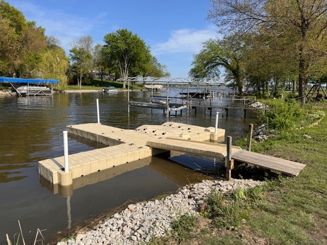 The Island On The Chain has all large waterfront lots. Every lot has its own private pier (directly in front of your park home) that will accommodate up to a 22′ boat. Pier size can be adjusted to accommodate up to any size boat. Customized piers for handicapped, boat lifts, and other special requests are available.